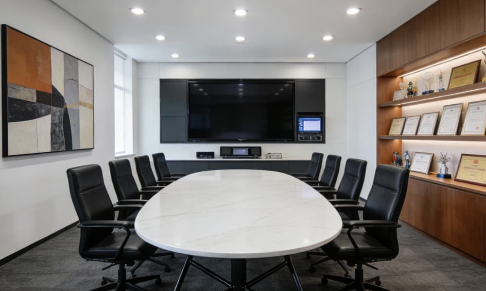 整体色调以白色、灰色为主,搭配少量黑色线条作为点缀,营造出简洁大气的视觉效果。材料运用上,注重质感与耐用性,采用玻璃、金属、石材等现代材质,彰显工业场所的专业性与品质感。在空间设计中,强调开放性与通透感,让自然光线充分渗透,提高空间的舒适度与工作效率。
