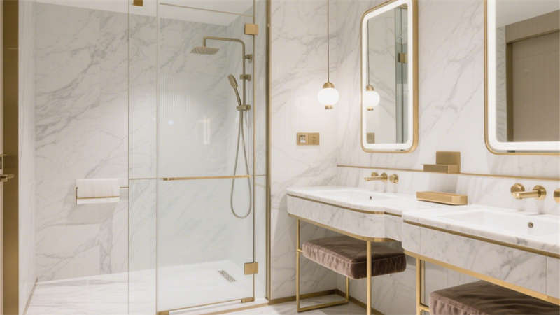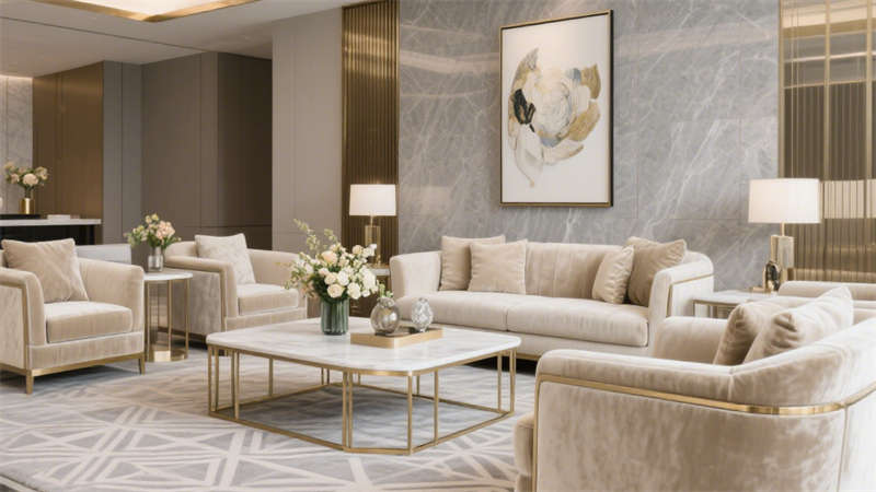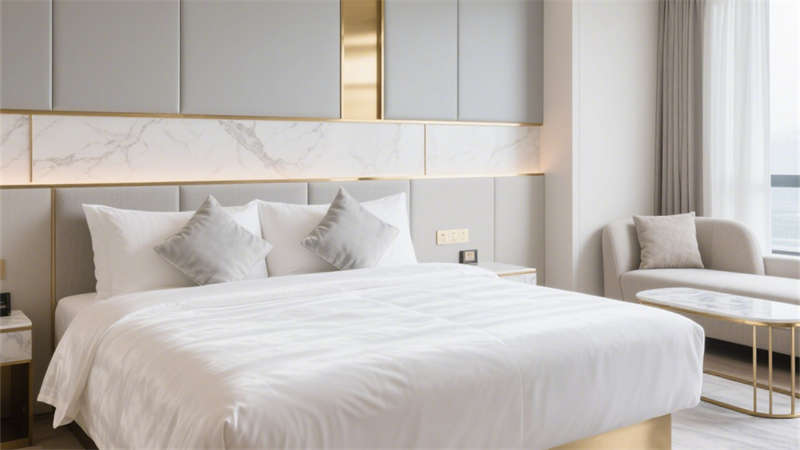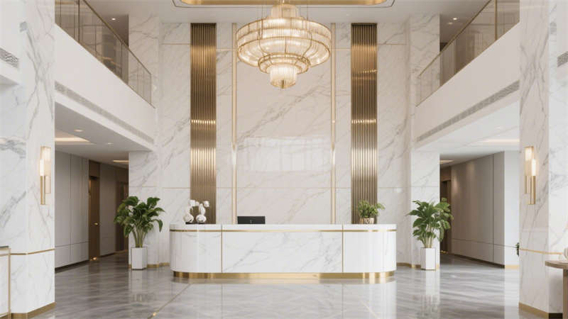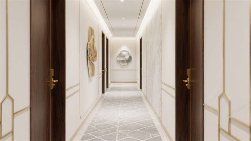本设计以轻奢风格为核心,通过柔和的基底色调与精致的细节搭配,构建出兼具质感与舒适度的酒店环境??占湟悦装咨肭郴疑。擅钊谌虢鹕鹗粝咛踝魑阕?,既避免了过度奢华的厚重感,又增添了空间的精致度。墙面与地面选用细腻的大理石纹理材质,在光线映衬下呈现出自然的光泽,提升整体空间的高级感。家具选型注重线条的简约流畅,搭配柔软的布艺软装,营造出温馨舒适的居住氛围。各个区域在设计上保持风格统一,从公共空间到客房区域,都延续了轻奢的设计语言,让整体空间既富有格调,又能给人带来放松惬意的居住体验。