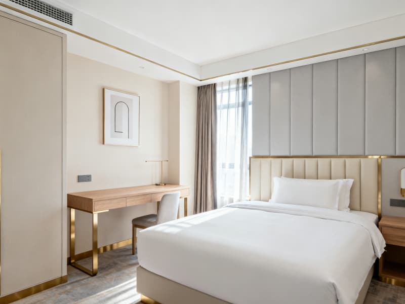 整体设计既契合蚌埠城市气质,又满足现代酒店的市场定位,让4500平的空间不仅具备完善的功能配置,更能通过质感设计与人文关怀,成为商务人士与休闲游客的理想旅居选择,传递“精致生活、舒适旅居”的核心理念。