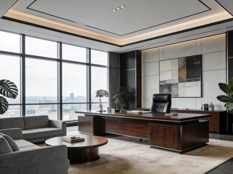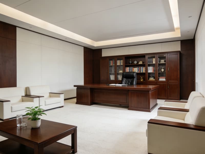 领导及总裁办公室则兼顾私密性与格调,总裁办公室以沉稳色系为主,配备智能办公系统与独立茶歇区,彰显企业实力;领导办公室侧重简约实用,细节处融入定制化收纳设计?;嵋槭野床煌婺6ㄖ疲又行⌒脱刑质业酱笮投喙δ芴?,均配备高清会议系统与声学优化设计,满足各类商务场景需求,全方位适配合肥企业高质量发展的办公需求。