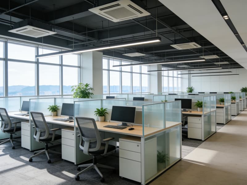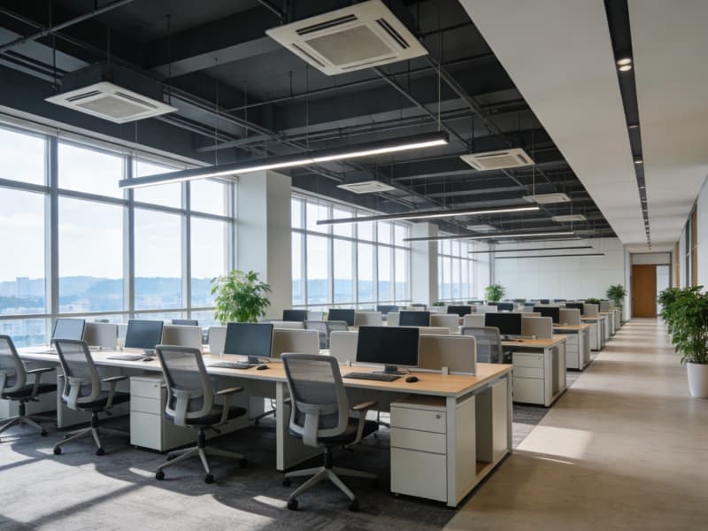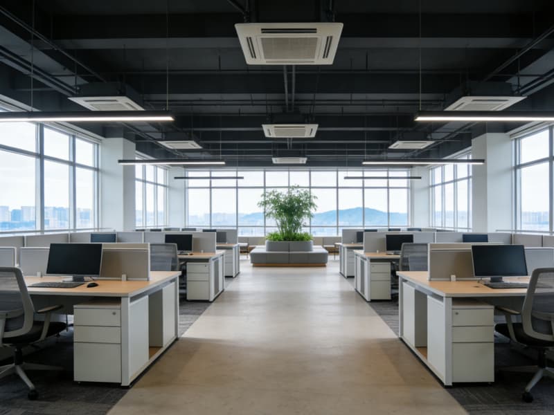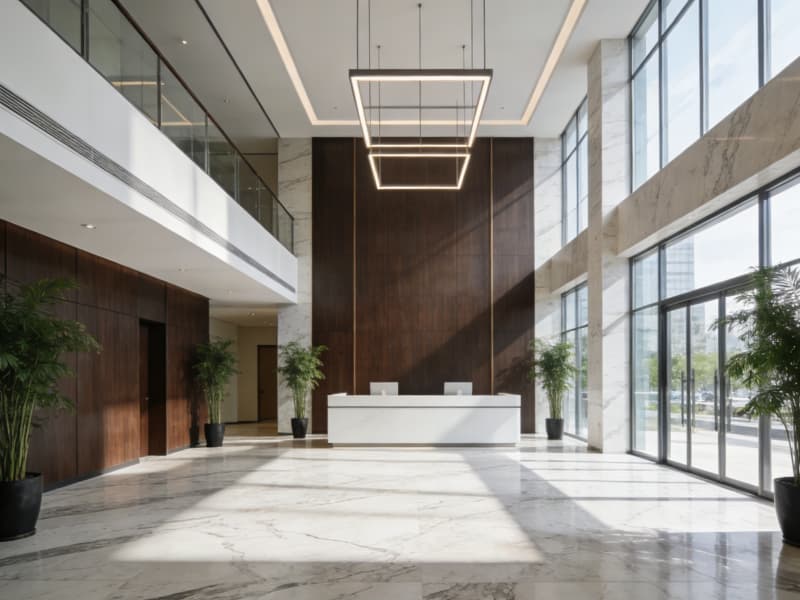 立足合肥科创沃土与人文底蕴,本次8000㎡办公楼设计以“生态赋能、智能高效、格调彰显”为核心,打造兼具地域辨识度与现代办公需求的标杆空间。建筑外观采用极简现代风格,大面积Low-E玻璃搭配浅灰色金属线条,既呼应合肥滨湖新区的都市质感,又实现采光与节能的平衡,夜间灯光点亮时宛如庐州天际线上的璀璨节点。