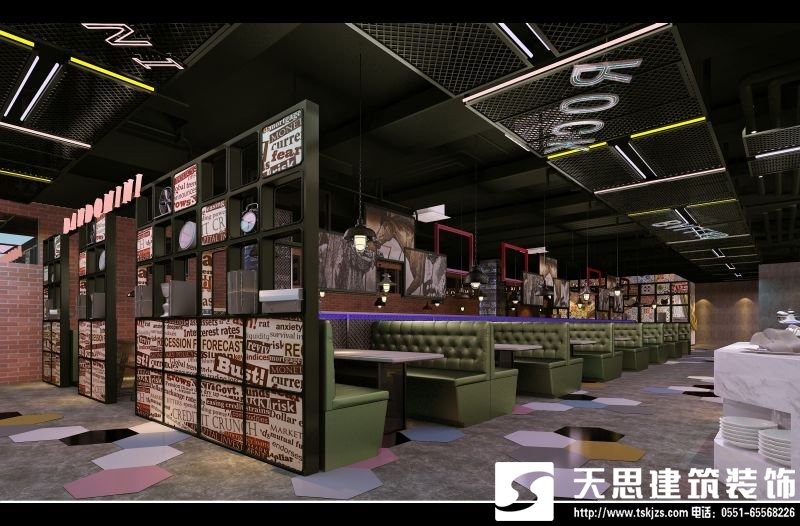 5、烧烤店的环境是消费者直接消费的区域,内部结构的完成能让烧烤店内部环境更和谐、有条理性,让烧烤店充满动感和情趣。昆明烧烤店的装修设计要从顾客的角度出发,根据烧烤店的空间环境按照实际的使用划分,烧烤店的区域分三类:工作区、就餐区、设备摆放区。