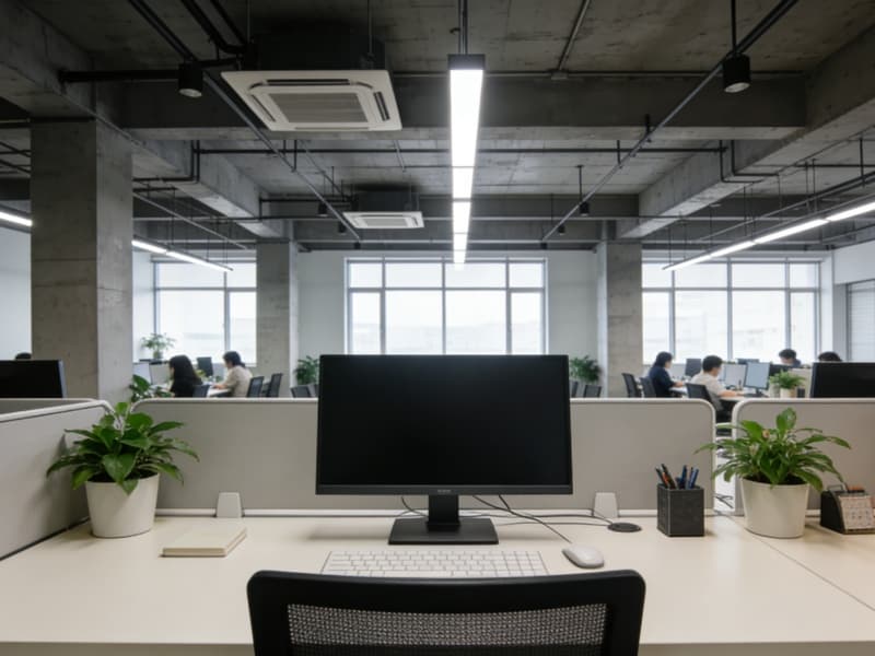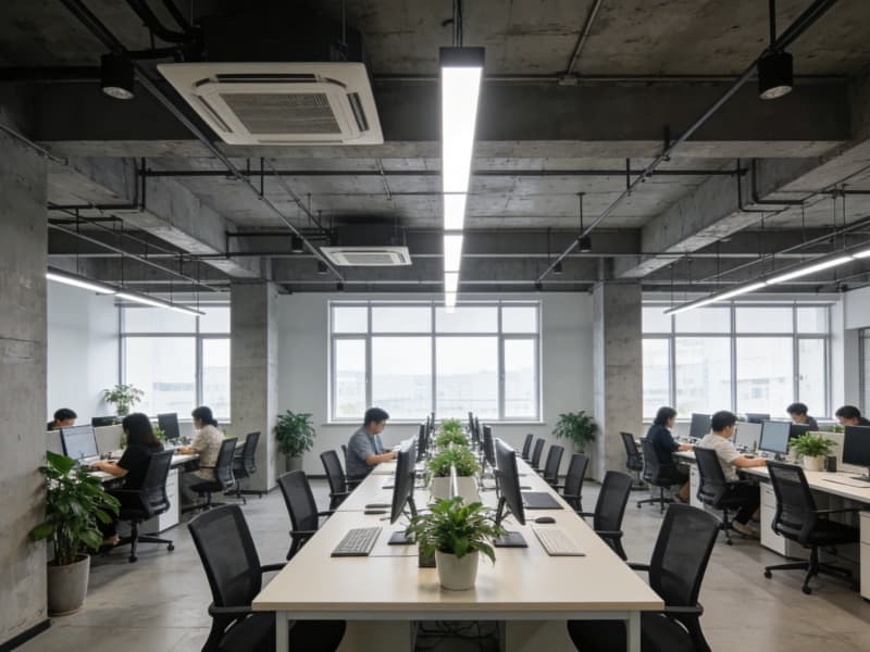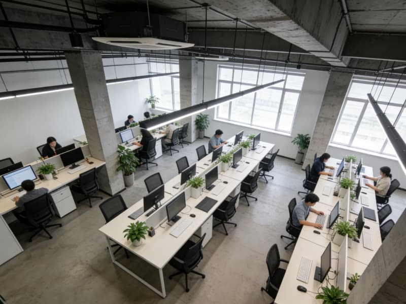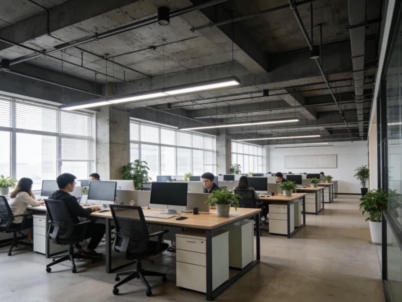 办公区域以简洁实用为主,采用开放式与独立办公室相结合的布局。开放式办公区的办公桌排列整齐,员工之间沟通便捷。独立办公室则为管理人员提供安静的工作环境。办公家具选用简约现代风格,搭配绿植,营造舒适的办公氛围。