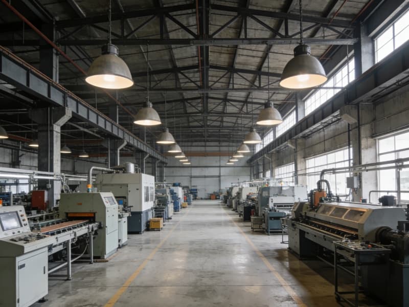 进入厂房内部,生产区域空间开阔,挑高的设计让整个空间显得宽敞明亮。顶部采用裸露的钢梁结构,搭配大型的吊灯,既满足生产照明需求,又强化了工业风格。地面选用耐磨的水泥自流平,坚固耐用且易于清洁。生产设备按照工艺流程有序摆放,通道宽敞,确保生产流程顺畅高效。