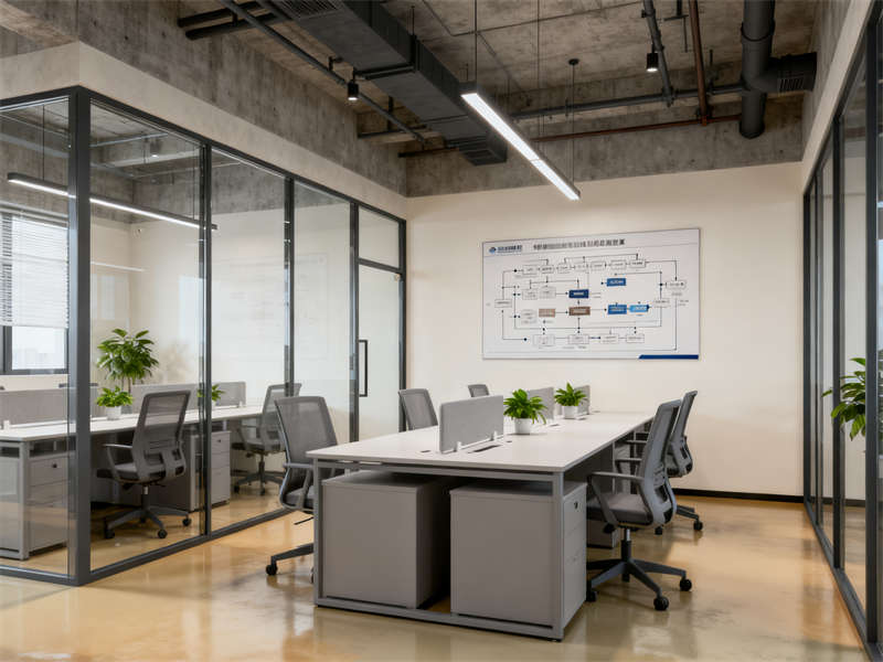原料仓库、成品检验区、设备机房等区域,在装修上兼顾收纳与高效,通过清晰的分区标识与规范的设备摆放,提升空间使用效率。办公配套区与员工休息区,在保持工业风统一的同时,融入舒适元素,让整体空间既满足生产办公需求,又能为人员提供良好的活动环境,全方位契合合肥厂房的综合使用场景。