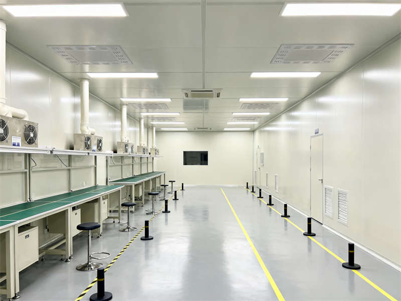 室内装修延续了外观的设计语言,以浅灰、米白为基础色调,搭配深灰金属线条点缀,各区域材质统一,地面均采用耐磨易清洁的环氧地坪,墙面根据不同功能需求选用洁净板或工业风涂料,确保整体视觉协调。无尘车间注重洁净与开阔,通过合理布局设备与通风系统,营造出无粉尘、秩序井然的生产环境;实验室则突出精准专业,实验台、通风橱等设施规划合理,满足各类实验操作需求。?
