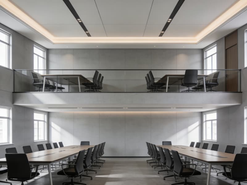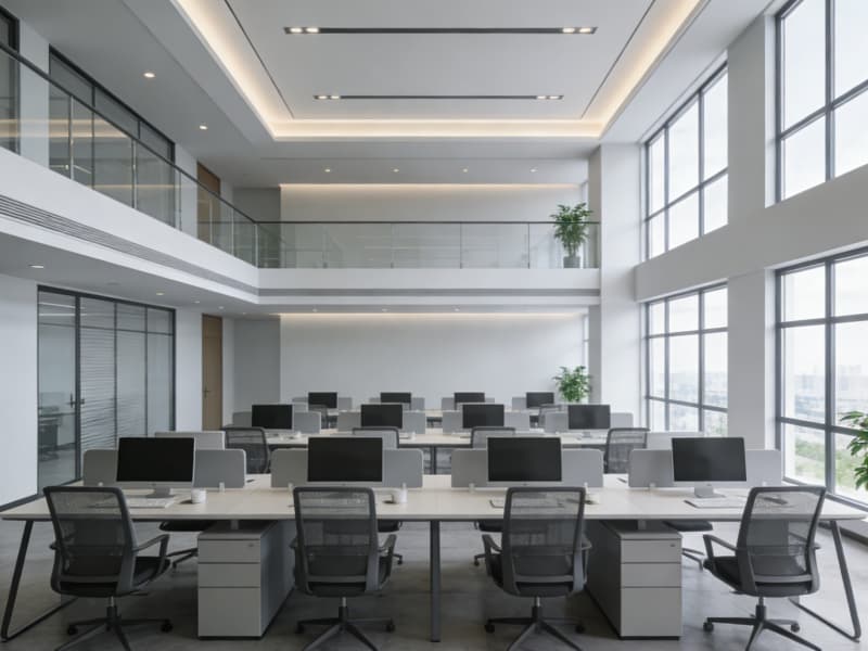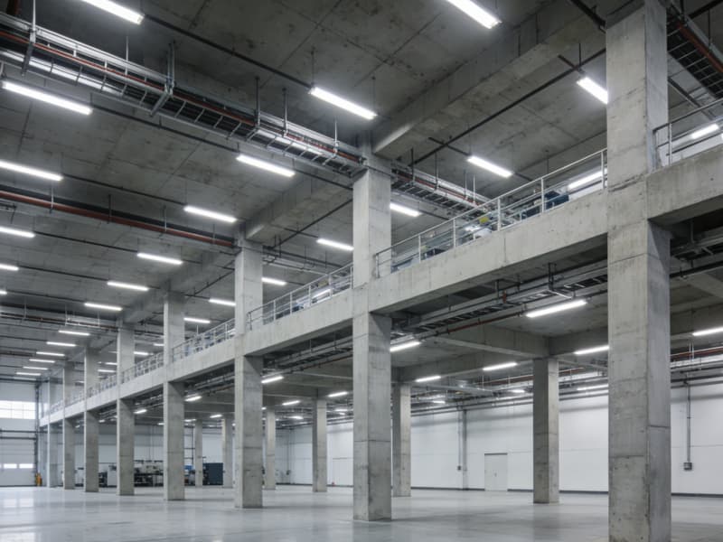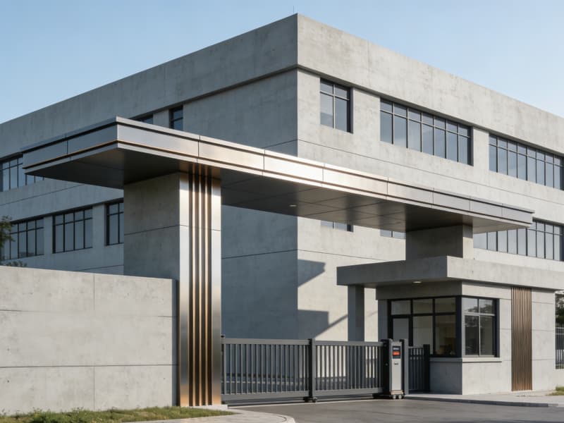 本厂专注两层混凝土框架厂房工装设计,以现代简约风格为核心,兼顾工业质感与实用性能。设计覆盖厂区整体布局、建筑外立面、室内功能空间全场景,包括鸟瞰规划、主入口、正侧立面、门厅、生产车间、仓储区、走廊、办公室、会议室及消防楼梯等,同时配套夜景亮化设计。外立面采用浅灰色真石漆/质感涂料,搭配白色线条与大面积玻璃窗,凸显规整大气的工业气质;室内空间以浅灰+白色为主色调,环氧地坪、嵌入式照明、有序管线布局,兼顾整洁性与高效性。所有设计遵循工装写实标准,建筑比例精准、光影自然,符合消防安全规范,既满足生产、办公、仓储等核心需求,又彰显企业专业形象,适配各类工业生产场景。