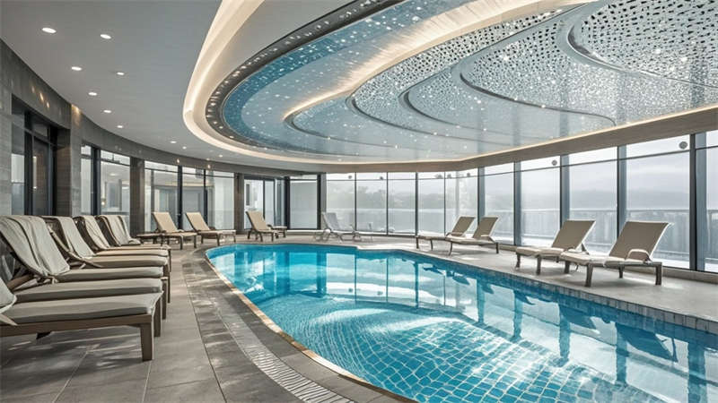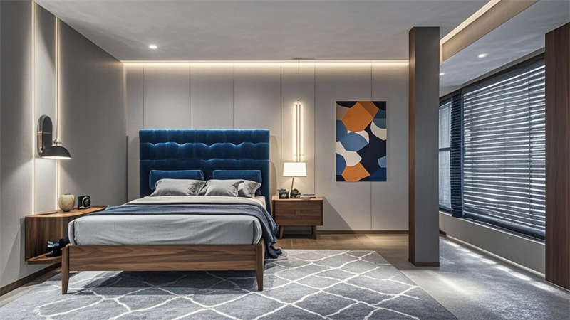 本2000平现代简约风格酒店设计以'城市绿洲'为核心理念,通过流线型空间布局构建高效动线。大堂采用悬浮式水晶灯与浅灰大理石地面形成视觉焦点,金属与木质的冷暖对比提升空间质感??头壳擞蒙罾队肭郴业淖采钆?,配合智能照明系统实现多场景模式切换。公共区域大量运用无框玻璃隔断,保持空间通透性的同时实现功能分区。色彩体系以米白为基底,点缀深胡桃木与香槟金,局部运用几何纹样增强设计感。材料选择注重环保与耐用性,石材、金属与吸音材质的组合兼顾美观与实用。灯光设计采用多层次照明系统,筒灯、灯带与装饰照明相结合,营造舒适光环境。各功能区域通过统一的材质语言和色彩逻辑保持整体协调,同时根据不同使用需求进行个性化设计,如会议室配备移动隔断实现灵活分隔,健身中心采用防滑橡胶地板等专业处理