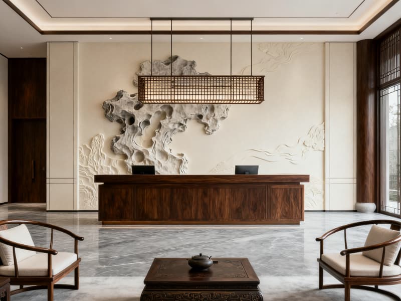 本设计以“新中式简约+宿州文化赋能”为核心,打造兼具实用性、格调感与地域特色的3000平办公空间。整体风格摒弃传统中式的繁复,提取宿州古建、灵璧石、非遗文化等元素,以现代设计语言重新诠释,既符合当代办公需求,又暗藏文化底蕴。