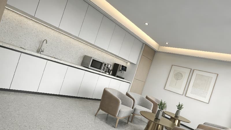 本设计以简约大气为核心,秉持去繁就简的设计理念,打造兼具高级感与实用性的办公空间。装修整体采用灰白黑为基础色调,搭配低饱和中性色点缀,线条流畅利落,无冗余装饰,凸显空间开阔感与质感。材质上选用岩板、实木、玻璃与金属等,通过细腻的纹理与光影层次,提升空间格调。