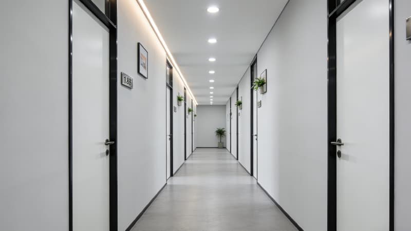 从公共区域到私密空间,装修风格保持统一,细节处彰显品质。墙面、地面的材质选择兼顾耐用性与美观度,家具摆放简洁有序,既符合现代办公需求,又传递出简约而不简单的设计美学,让整个办公空间既适合高效工作,也能给予使用者舒适的体验。