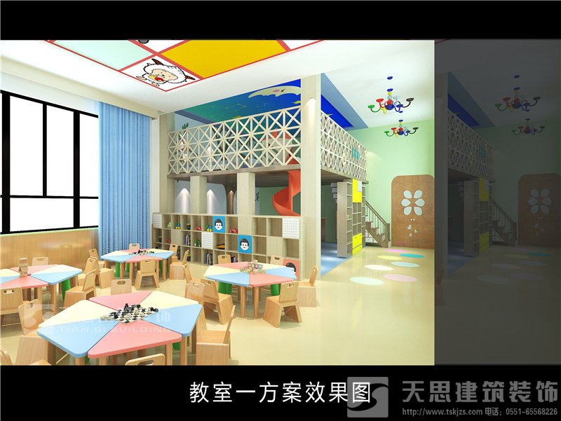 幼儿园装修要充分考虑色彩搭配的和谐,体现高雅、理性与幼儿天性相融合的色彩理念。在装修中尽量保留建筑原有的白墙面,主要家具也以较多白色块面来协调艳丽色块,造成亮丽、活泼、雅致的色彩效果。